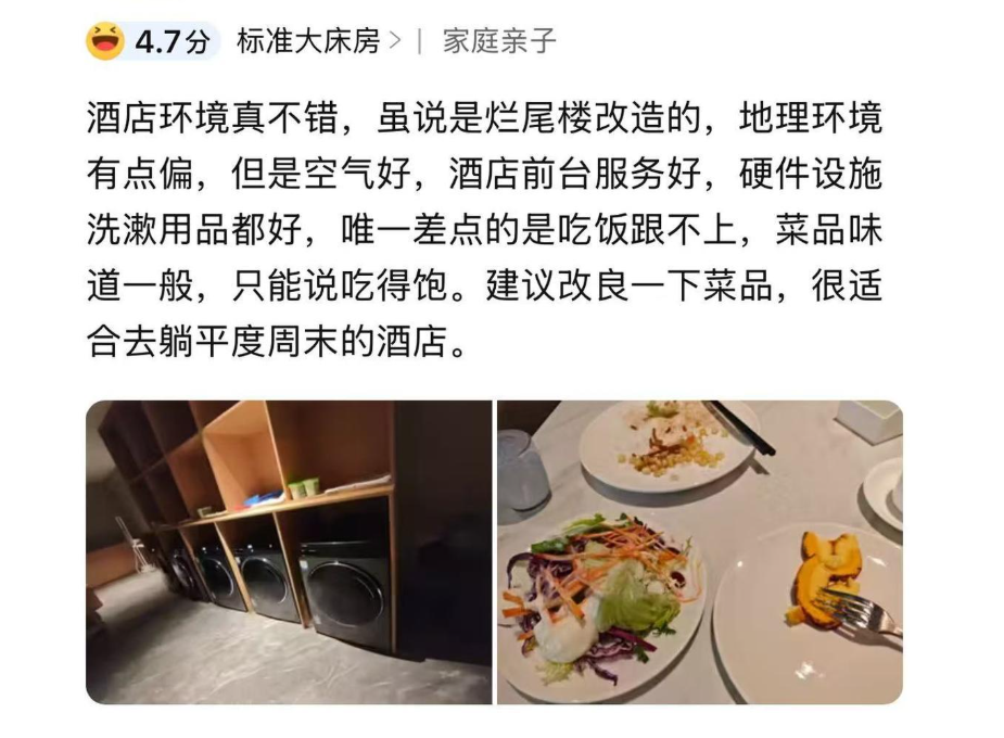 住客反馈的是“吃饭跟不上,菜品味道一般”,而且看了一下菜的照片